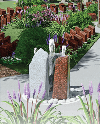 One of the features are the fountains themselves, which will be cascading over large, natural stones. The sound of the falls will bring comfort and serenity during reflections on memories.